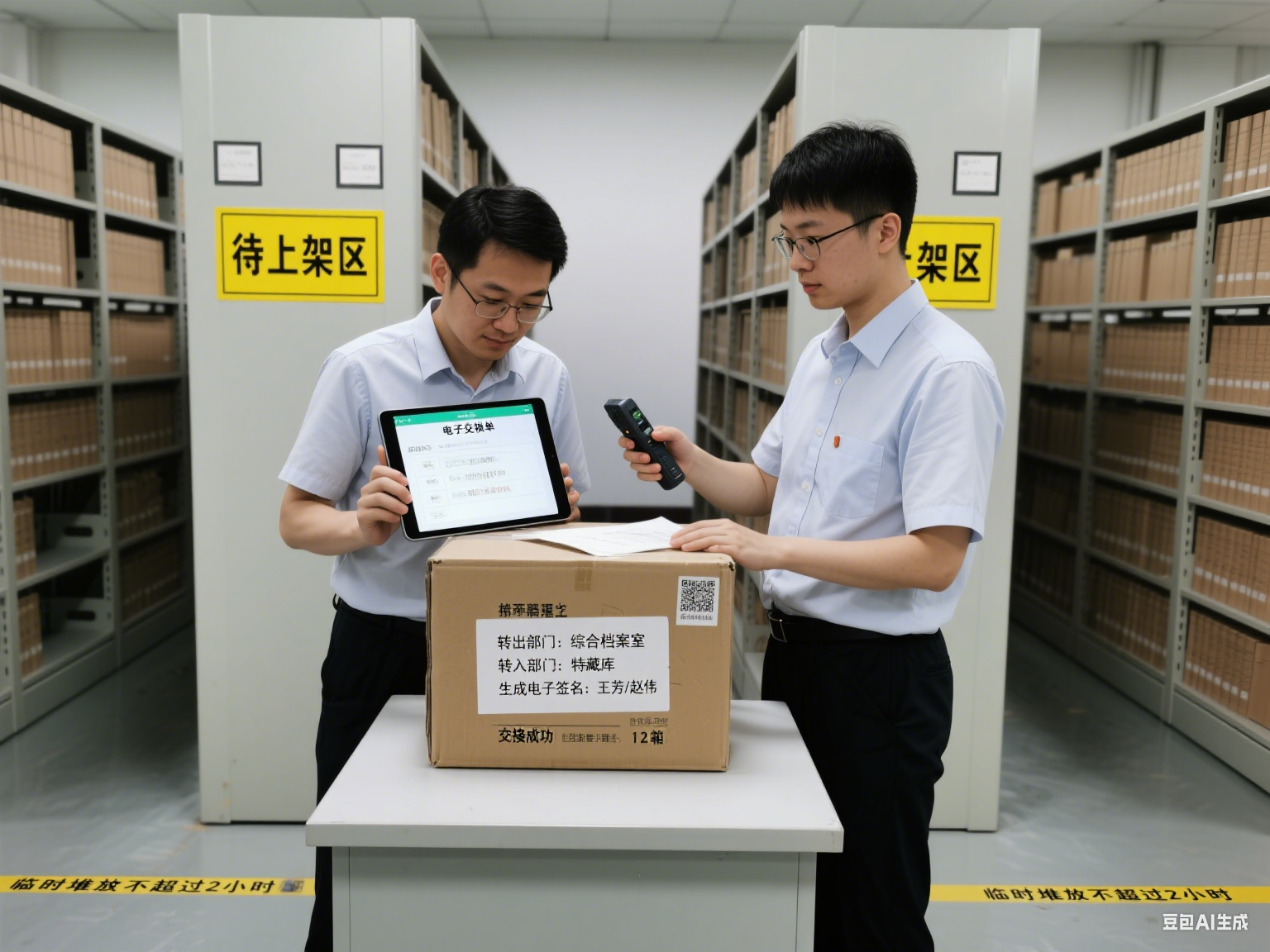移動(dòng)終端的 “現(xiàn)場(chǎng)操作” 打破時(shí)空限制,管理員配備專(zhuān)用平板或手機(jī)(安裝檔案管理 APP),可在檔案移動(dòng)現(xiàn)場(chǎng)完成:實(shí)時(shí)錄入移動(dòng)原因(選擇預(yù)設(shè)選項(xiàng),如 “借閱 / 修復(fù) / 調(diào)閱”)、拍攝檔案狀態(tài)(如破損情況)、上傳位置變更照片(新位置全景圖)。APP 與后臺(tái)系統(tǒng)實(shí)時(shí)同步,確保數(shù)據(jù) “現(xiàn)場(chǎng)采集、即時(shí)生效”。?