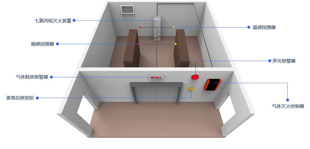 庫房內部的火災報警器自動對防護區進行探測和報警,不需要人為介入即可自行啟動滅火裝置。